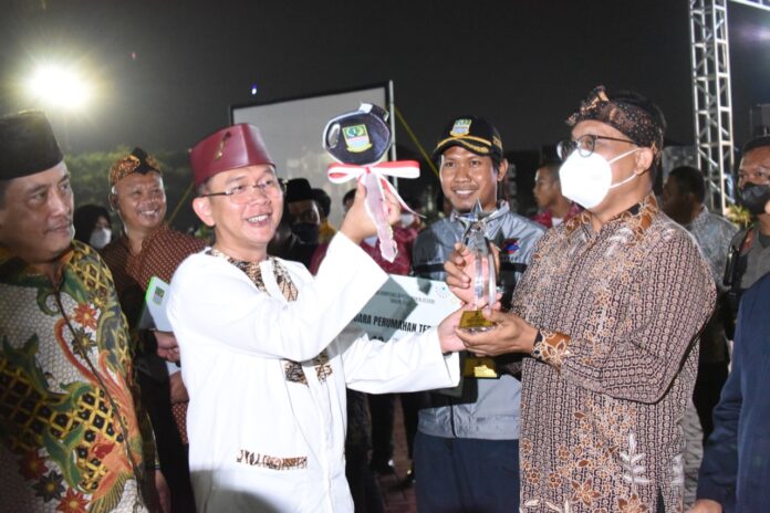 Penyerahan hadiah lomba Kampung Bersih Makin Berani sendiri dilakukan oleh Pj Bupati Bekasi, Dani Ramdan secara simbolis pada hari puncak rangkaian Peringatan Hari Jadi Kabupaten Bekasi ke 72 dan Hari Kemerdekaan RI ke 77, di Lapangan Plaza Pemda Kabupaten Bekasi. (adv)