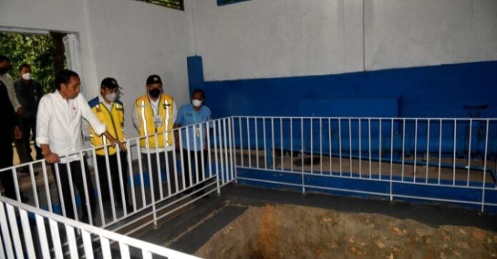 Saat meninjau, Presiden didampingi oleh Staf Ahli Menteri Pekerjaan Umum dan Perumahan Rakyat (PUPR) Bidang Teknologi, Industri, dan Lingkungan Endra S. Atmawidjaja dan Direktur Air Minum, Ditjen Cipta Karya Anang Muchlis.
