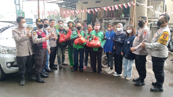 RANNEWS.CO.ID, BEKASI – Polsek Serang Baru bersama dengan mahasiswa membagikan sembako kepada komunitas ojek pangkalan dan Ojol serta warga yang terdampak kenaikan harga bahan bakar(BBM) beberapa waktu lalu.