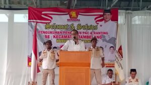 RANNEWS.CO.ID, KABUPATEN BEKASI – DPC Partai Gerindra Kabupaten Bekasi mengukuhkan pengurus PAC dan tujuh ranting Partai Gerindra se-Kecamatan Tambelang di Kampung Pakuning RT.03 RW.02 Desa Sukarapih, Minggu (23/10/2022). Pengukuhan ini menjadi kegiatan yang keenam setelah sebelumnya dikukuhkan pengurus PAC Serangbaru, Tambun Selatan, Sukawangi, Sukakarya dan Cabangbungin.