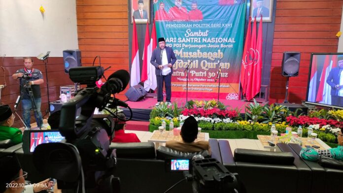 RANNEWS.CO.ID, BANDUNG – DPC Partai Demokrasi Indonesia (PDI) Perjuangan Kabupaten Bekasi, mengirimkan peserta untuk perlombaan Musabaqoh Hifdzil Quran (MHQ), yang diadakan DPD PDI Perjuangan Jawa Barat, dalam memperingati Hari Santri Nasional 2022.