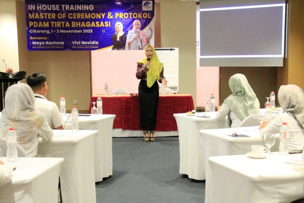 RANNEWS.CO.ID, BEKASI – Pelatihan master of ceremony (MC) dan protokol Perusahaan Daerah Air Minum Tirta Bhagasasi Bekasi hari kedua menghadirkan praktisi MC profesional Vivi Novidia yang membawakan tips dan trik menjadi MC profesional, baik di lingkungan perusahaan maupun di luar perusahaan.