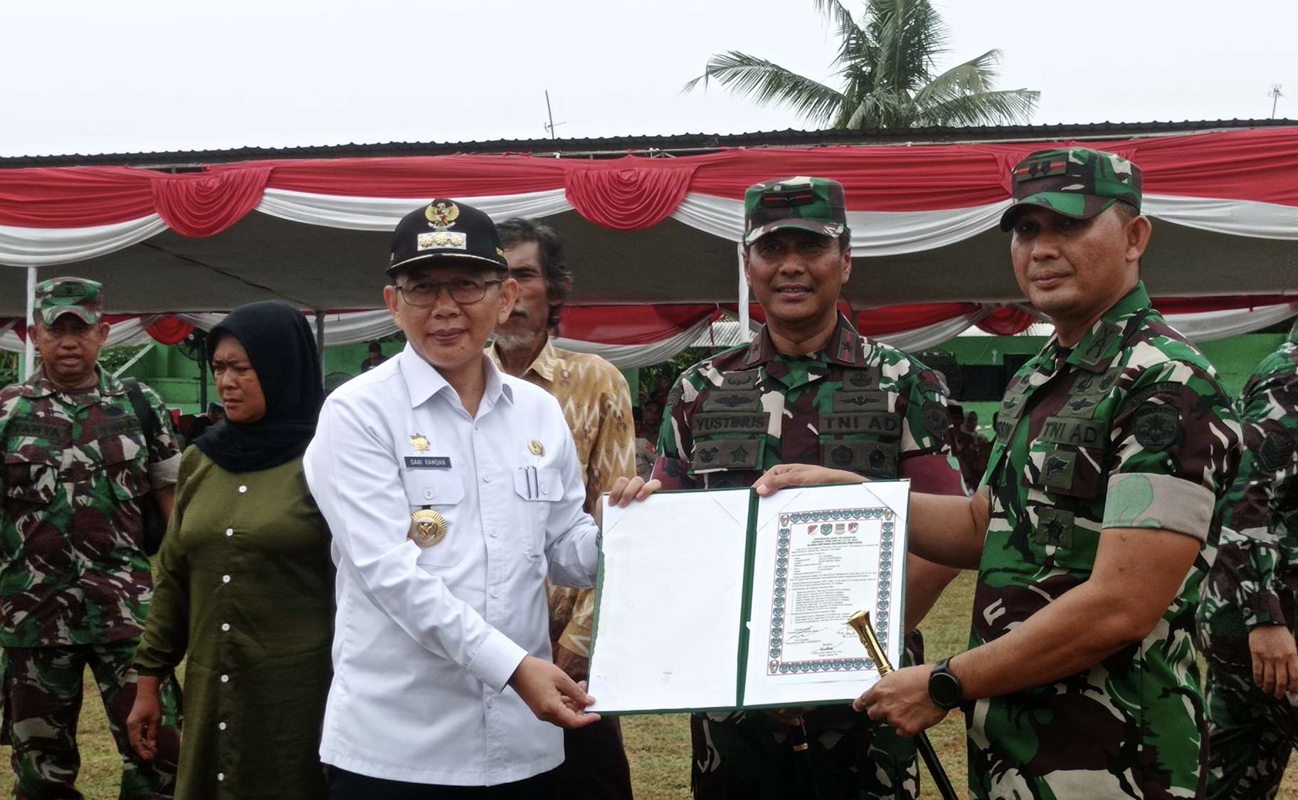 RANNEWS.CO.ID, PEBAYURAN – Pj Bupati Bekasi Dani Ramdan bersama unsur Forkopimda menghadiri acara penutupan kegiatan TNI Manunggal Membangun Desa (TMMD) ke-115 Tahun 2022, di Lapangan Sepak Bola, Desa Kertasari, Kabupaten Pebayuran, Rabu (11/9/2022) .