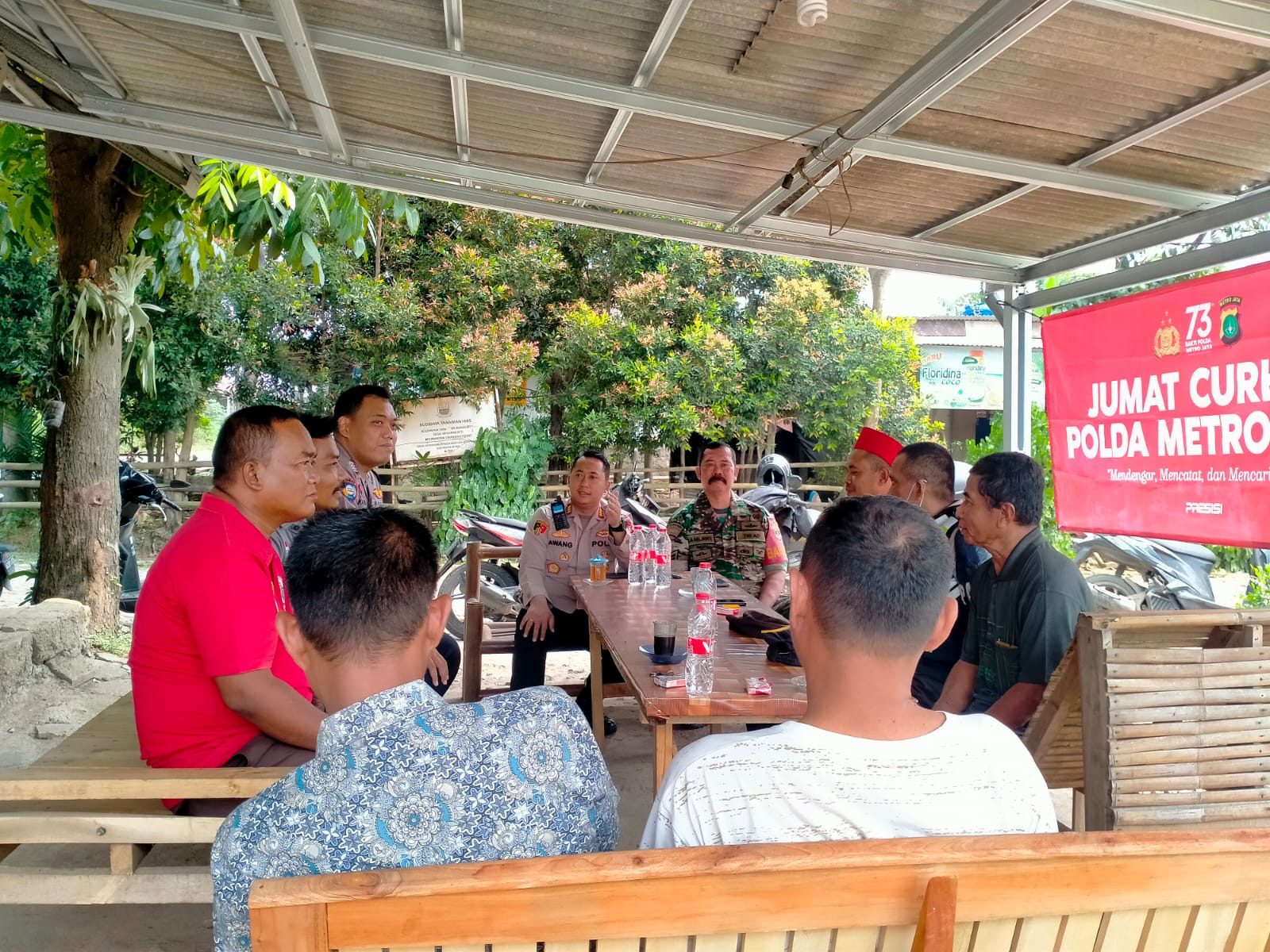 Di pimpin langsung Kapolsek Cikarang pusat Akp Awang Parikesit, S.I.K, M.Si dan Bhabinkamtibmas Bripka Eka Agung dan beberapa petugas lainnya juga Babinsa Sertu Samlawi,giat Jumat curhat di lakukan dengan para ketua RT dan juga Kadus desa hegar Mukti kecamatan Cikarang pusat.