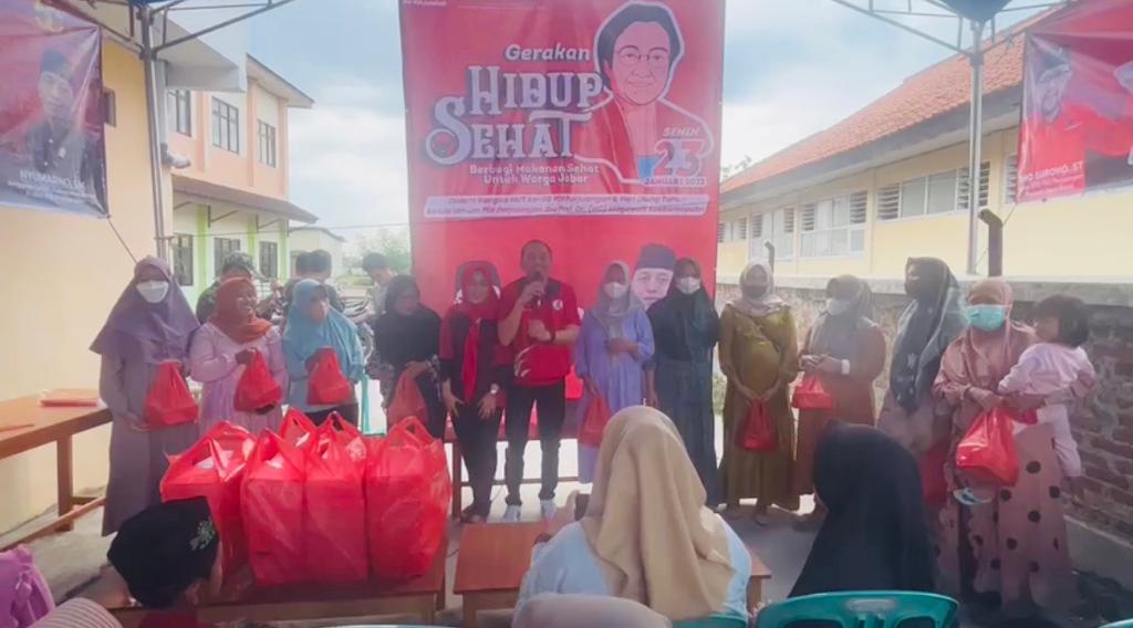 RANNEWS.CO.ID, BEKASI -Peringati HUT ke-50 PDI Perjuangan dan Hari Ulang Tahun Ketua Umum PDI Perjuangan Prof.Dr. (HC) Megawati Soekarnoputri ke-76 tahun, Nyumaro adakan kegiatan Gerakan Hidup Sehat Berbagi Makan Sehat Untuk Warga Cikarang Timur.