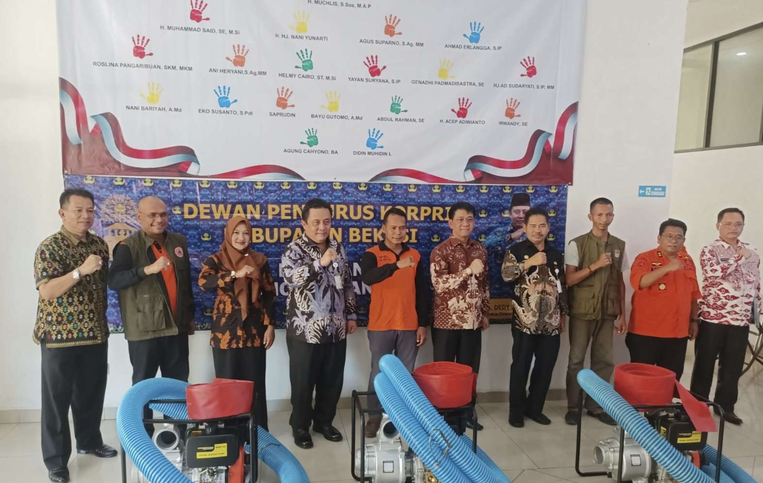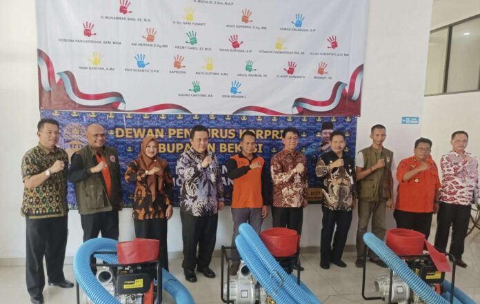 RANNEWS.CO.ID, BEKASI –Dewan Pengurus Korps Pegawai Republik Indonesia (Korpri) Kabupaten Bekasi memberikan bantuan 10 mesin pompa air kepada 10 Desa Tangguh Bencana (Destana) yang ada di Kabupaten Bekasi.