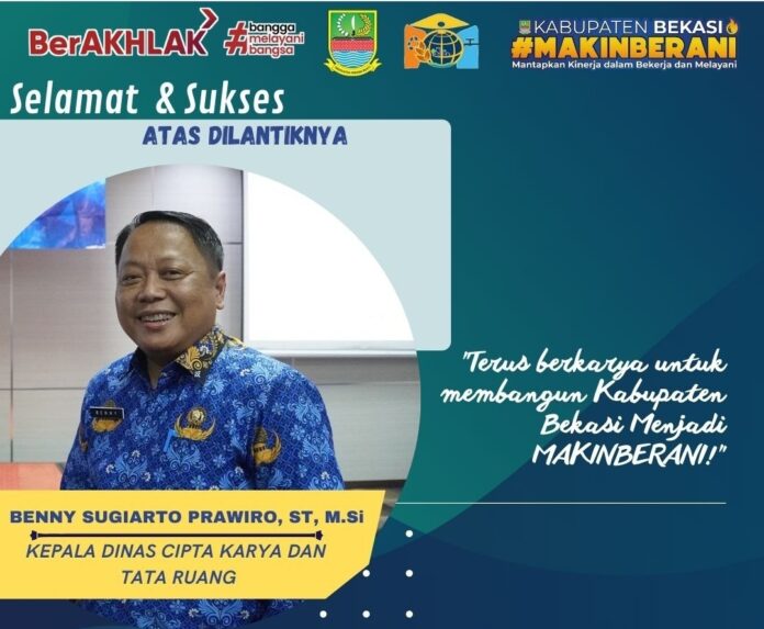 Sudah sekian lama, kekosongan di Dinas Cipta Karya dan Tata Ruang, akhirnya hari ini, Jumat (17/03/2023) resmi Serah Terima Jabatan (Sertijab) antara Plt. Kepala Dinas Cipta Karya H. Suhup, yang digantikan oleh Benny Sugiarto sebagai kepala dinas definitif, terselenggara di Hotel Sakura Cikarang, Kabupaten Bekasi Jawa Barat.