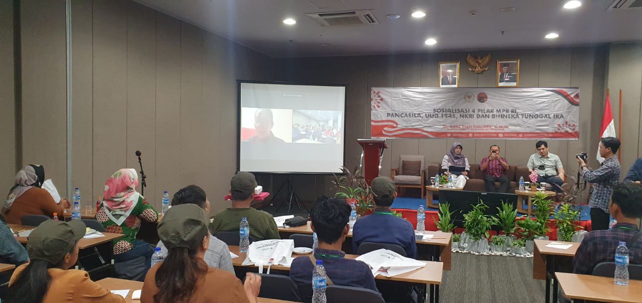 RANNEWS.CO.ID, BEKASI – Anggota Badan Pengkajian Majelis Permusyawaratan Rakyat (MPR) RI sekaligus anggota Komisi VI Dewan Perwakilan Rakyat (DPR) RI, Rieke Diah Pitaloka melakukan kegiatan Sosialisasi Empat Pilar Kebangsaan di Hotel BATIQA Jababeka, Bekasi, pada Jumat (31/3). Sosialisasi ini dilakukan dalam rangka menyosialisasikan pentingnya Pancasila sebagai dasar negara kepada masyarakat di daerah pilih, yakni Kabupaten Bekasi.