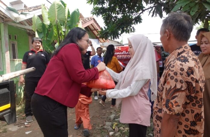 Christin mengatakan membagikan sembako secara gratis di bulan suci Ramadhan sejumlah 150 paket dan dibagikan di dua titik yaitu RT 05 / RW 02 DAN RT 06 / RW 02 Kampung Poncol Desa Pasir Sari.