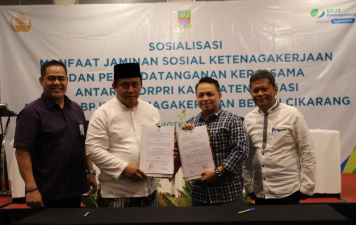 RANNEWS.CO.ID, CIKARANG PUSAT – Pemerintah Kabupaten (Pemkab) Bekasi melindungi anggota Korps Pegawai Republik Indonesia (Korpri) lewat Badan Penyelenggara Jaminan Sosial (BPJS) Ketenagakerjaan. Jaminan perlindungan itu dituangkan melalui MoU Pemkab Bekasi dengan BPJS Ketenagakerjaan Cabang Bekasi Cikarang di Cikarang Pusat pada Jumat (22/09/2023).