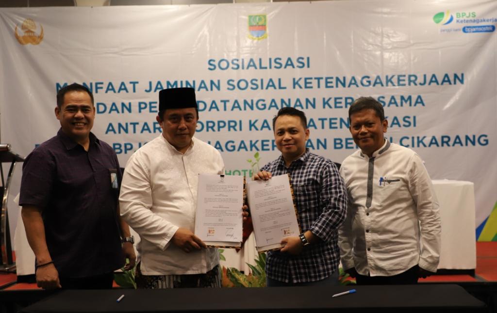 “Ya hari ini, selain sosialisasi BPJS Ketenagakerjaan ke anggota Korpri juga penandatanganan MoU dan kerjasama ini dapat memberikan manfaat bagi seluruh anggota Korpri di Kabupaten Bekasi,” ujar Sekretaris Daerah (Sekda) Kabupaten Bekasi Dedy Supriyadi setelah menandatangani MoU tersebut.