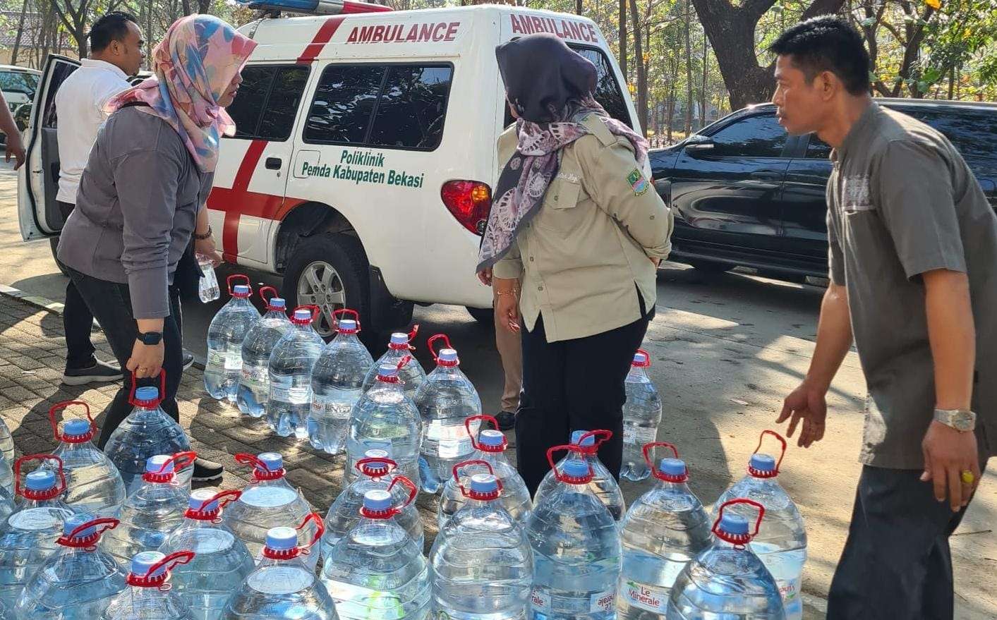 Penyaluran air bersih, berkolaborasi antara Dinas Kesehatan dengan 36 Rumah Sakit, UPTD Poliklinik dan Nakes Pemda Kabupaten Bekasi.