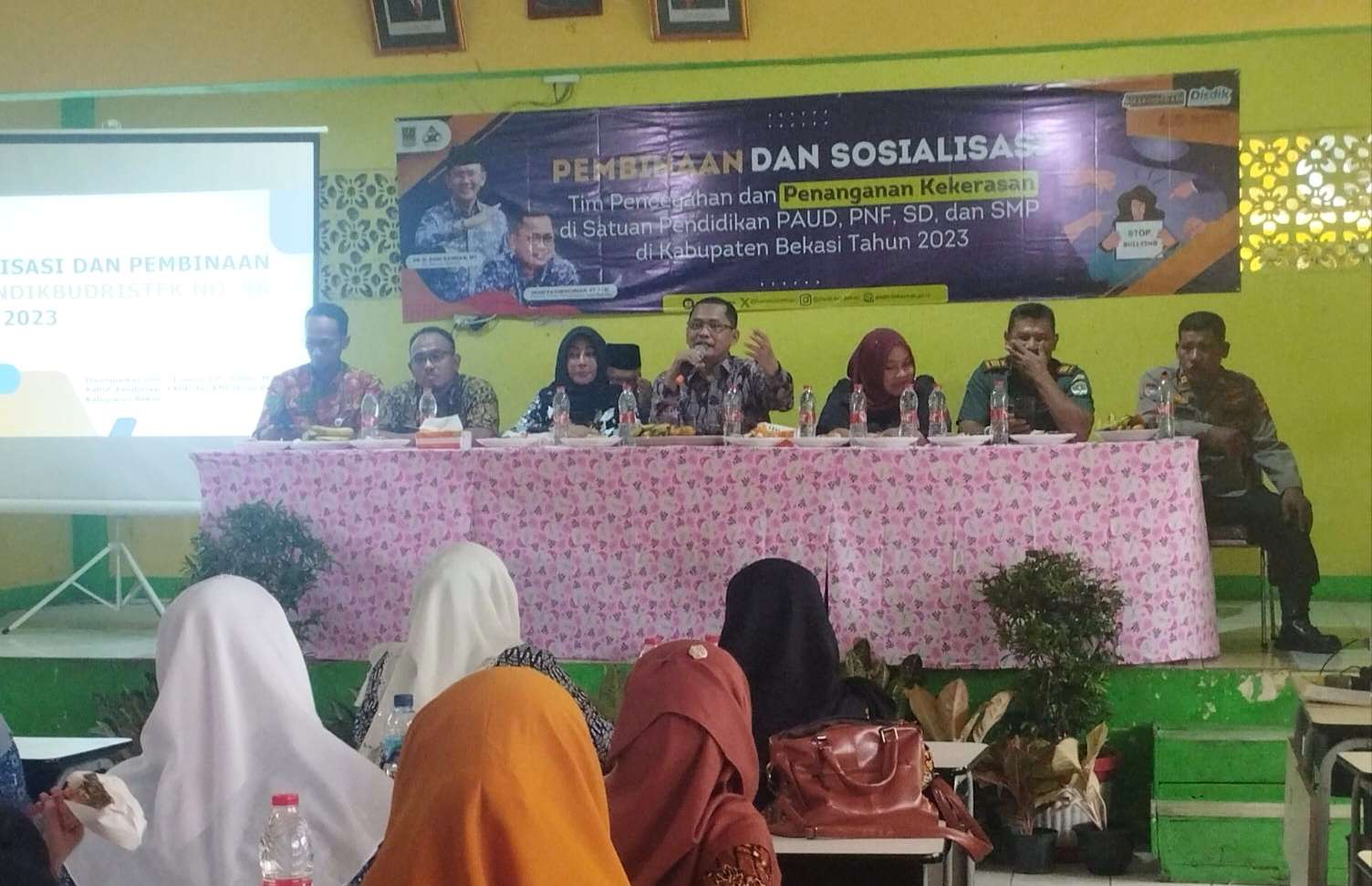 Hal tersebut sesuai dengan Permendikbud No 46 Tahun 2023 dan Surat Keputusan (SK) Bupati Bekasi tentang pembentukan tim pencegahan dan penanganan kekerasan di satuan pendidikan.