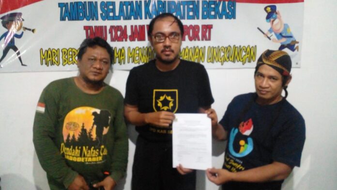 RANNEWS.CO.ID, KABUPATEN BEKASI – Calon Anggota Legislatif (Caleg) dari Partai Ummat untuk Daerah Pemilihan (Dapil) 3 Kecamatan Tambun Selatan, Aji Aria Wiguna, menandatangani pakta integritas dengan warga masyarakat di Perumahan Papan Mas RT.02 RW.08 Desa Mangunjaya, Kecamatan Tambun Selatan, Sabtu (4/11/2023) malam.