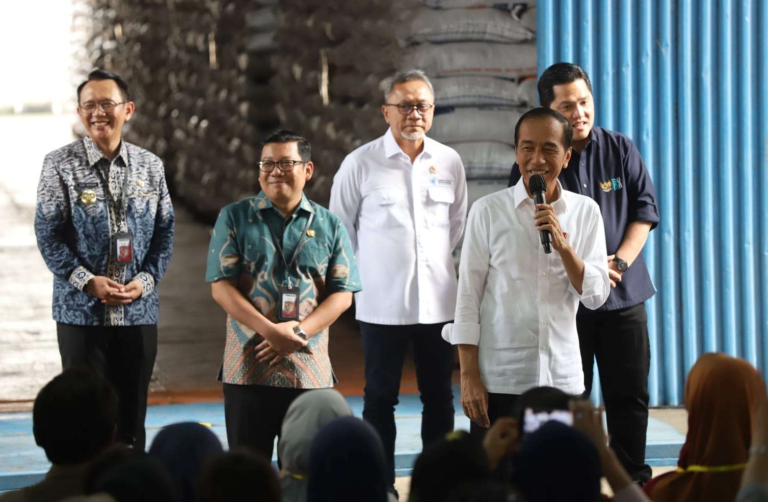 Dalam agenda tersebut, Presiden Jokowi terlebih dahulu meninjau ketersediaan pangan di Gudang Bulog Cibitung bersama dengan Menteri Perdagangan Zulkifli Hasan, Menteri BUMN Erick Thohir, Kepala Badan Pangan Nasional Arief Prasetyo Adi, serta Direktur Bulog Bayu Krisnamurti.