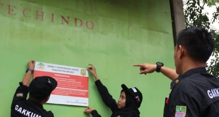 RANNEWS.CO,ID, BEKASI – Pemerintah Kabupaten (Pemkab) Bekasi melalui Dinas Lingkungan Hidup (DLH) Kabupaten Bekasi menutup operasional lima badan usaha yang berlokasi di Jalan Cimandiri, Perumahan Graha Asri, Jatireja Kecamatan Cikarang Timur. Penutupan operasional produksi ini dilakukan berawal dari adanya laporan warga sekitar yang sangat terganggu kebisingan dengan berjalannya produksi pabrik tersebut sampai 3 shift.