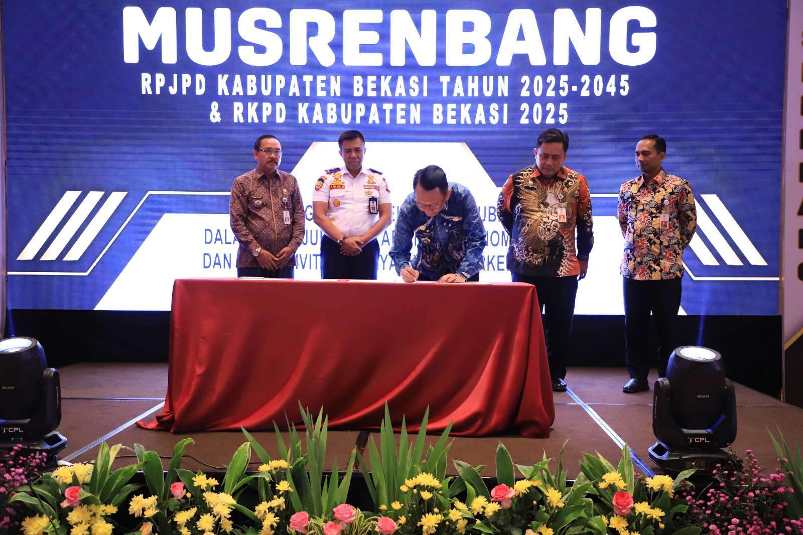 RANNEWS.CO.ID, BEKASI – Pemerintah Kabupaten (Pemkab Bekasi) menutup secara resmi Muswarah Perencanaan Pembangunan (Musrenbang) Rencana Pembangunan Jangka Panjang Daerah (RPJPD) Kabupaten Bekasi Tahun 2025-2045 dan Rencana Kerja Pembangunan Daerah (RKPD) Kabupaten Bekasi Tahun 2025, di Nuanza Hotel, Cikarang Selatan.