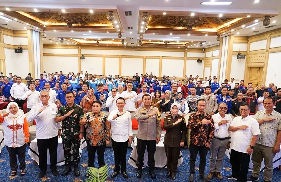 RANNEWS.CO.ID, CIKARANG SELATAN – Pj Bupati Bekasi Dani Ramdan bersama Forkopimda Kabupaten Bekasi dan beberapa Serikat Pekerja serta Pengusaha se-Kabupaten Bekasi, mengikuti kegiatan peringatan Hari Buruh Internasional (May Day) tahun 2024 tingkat kabupaten yang diselenggarakan di Hotel Sahid Jaya, Lippo Cikarang pada Senin (01/05/24).