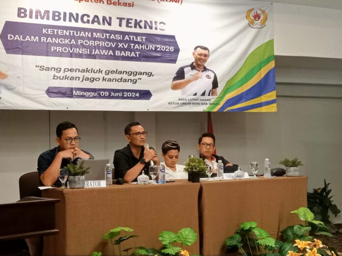RANNEWS.CO.ID, CIKARANG UTARA – Komite Olahraga Nasional Indonesia (KONI) Kabupaten Bekasi menggelar bimbingan teknik (Bimtek) regulasi mutasi atlet dalam rangka persiapan Pekan Olahraga Provinsi (Porprov) XV Jawa Barat Tahun 2026.