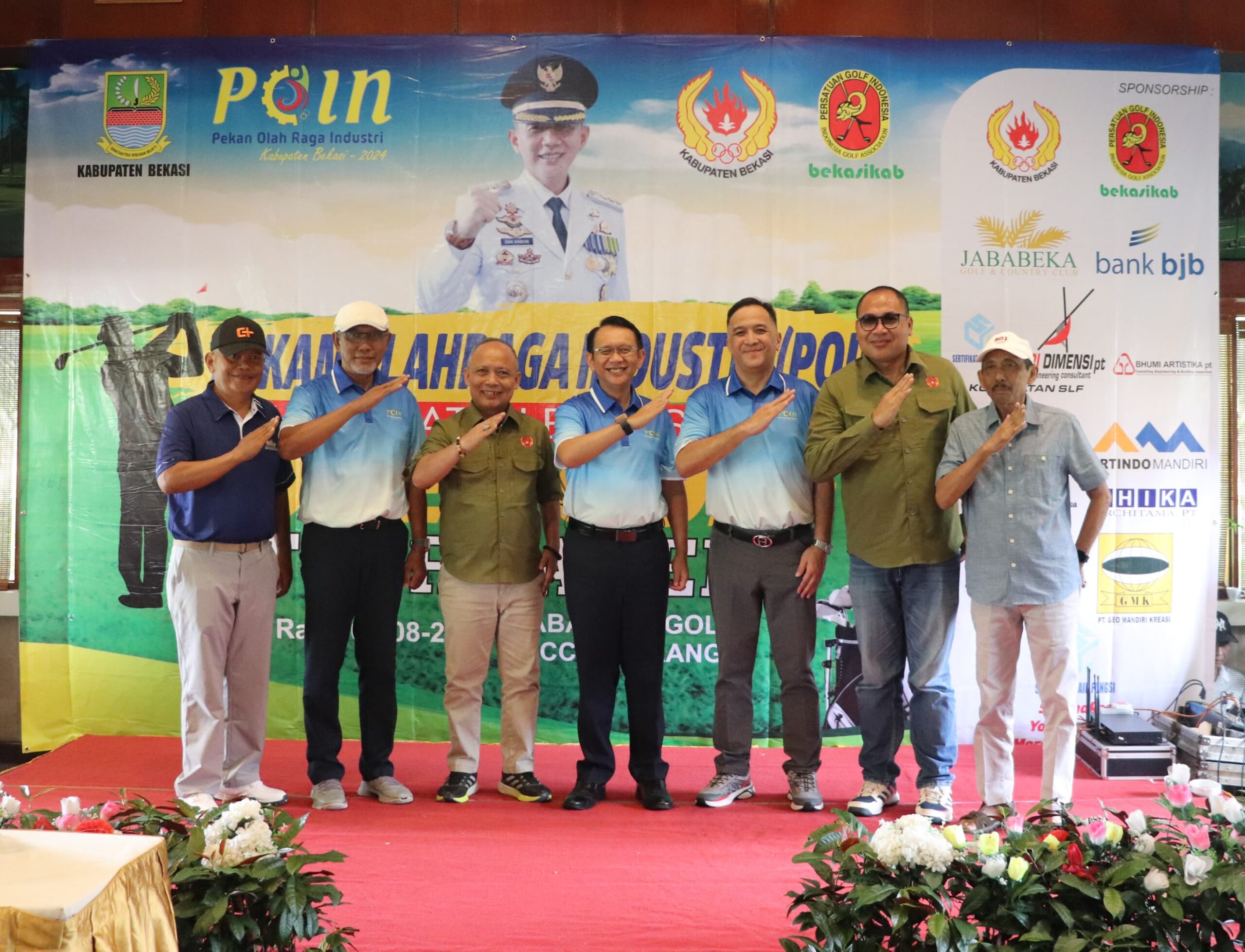 RANNEWS.CO.ID, CIKARANG UTARA – Pj Bupati Bekasi, Dani Ramdan menghadiri sekaligus menyerahkan piala kepada para pemenang cabang olahraga Golf dalam ajang Pekan Olahraga Industri (POIN) yang diinisiasi oleh KONI Kabupaten Bekasi bekerjasama dengan Disbudpora Kabupaten Bekasi di Aula Jababeka Golf Country Club, Cikarang Utara pada Rabu (07/08/2024).