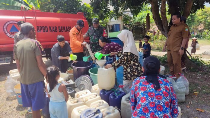 Badan Penanggulangan Bencana Daerah (BPBD) Kabupaten Bekasi merilis hingga Rabu, 4 September 2024 pukul 19.00 WIB, Pemkab Bekasi bersama stakeholder lainnya, telah mendistribusikan sebanyak 439.400 liter air bersih ke berbagai wilayah terdampak kekeringan.