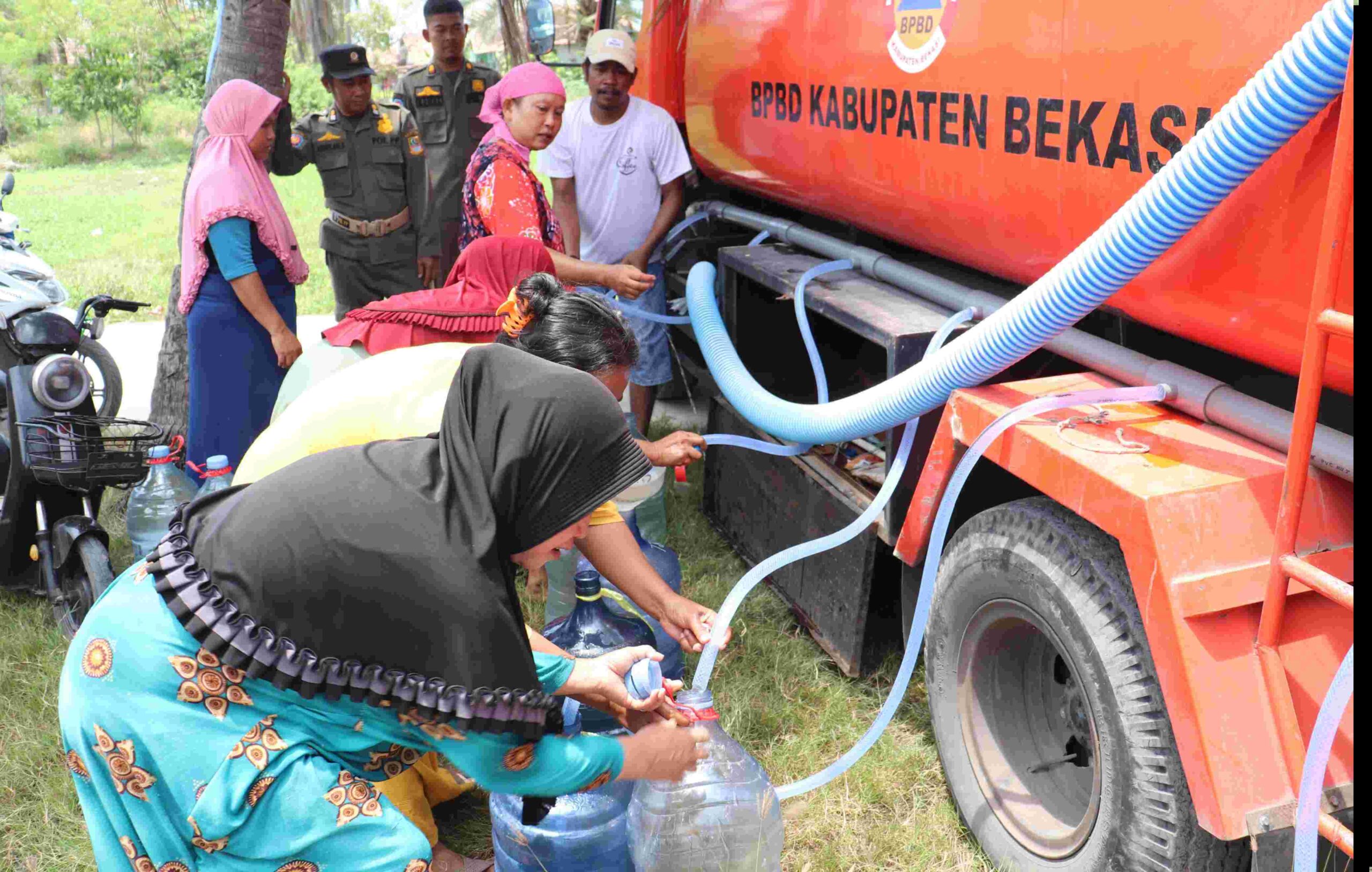 3. Di Kecamatan Muaragembong, BPBD mengirimkan 10.000 liter air bersih untuk warga Desa Jayasakti.