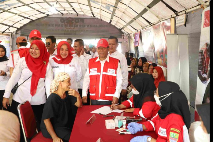 RANNEWS.CO.ID, SERANG BARU – Palang Merah Indonesia (PMI) Kabupaten Bekasi menggelar Apel Peringatan Hari Ulang Tahun (HUT) PMI ke-79 Tahun, dilanjutkan kegiatan bakti sosial penyaluran bantuan sembako dan pelayanan kesehatan gratis kepada masyarakat, bertempat di Posko Pengolahan Water Sanitation Hygiene Promotion (WASH), Kampung Tegal Kadu, Desa Sirnajaya Kecamatan Serang Baru pada Rabu (18/09/2024).