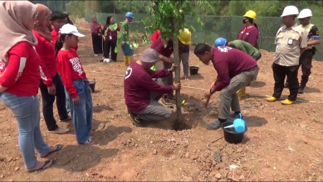 Acara kemudian dilanjutkan dengan penanaman pohon bibit pohon trembesi yang memiliki banyak manfaat sebagai oksigen dan juga bisa memahan tanah dari abrasi sungai.