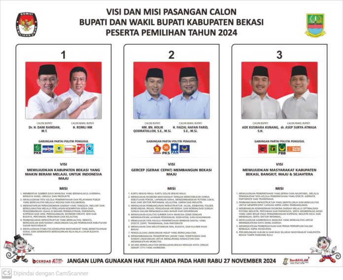 PemerintahanPolitik KPU Kabupaten Bekasi Sosialisasikan Visi Misi Paslon Pilkada 2024 Penulis Admin Satu - 12 November 2024 256 Facebook Twitter WhatsApp Print Telegram Admin Satu