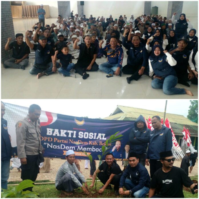 RANNEWS.CO.ID, KABUPATEN BEKASI – Jajaran pengurus DPD Partai Nasional Demokrat (NasDem) Kabupaten Bekasi, kembali menunjukkan kepeduliannya kepada warga masyarakat sekitar, dengan menyalurkan bantuan berupa sembako dapur santri dan bibit pohon pinang kepada pengelola Pondok Pesantren (Ponpes) Nuu Waar AFKN Desa Ciledug, Kecamatan Setu, Senin (18/8/2025).