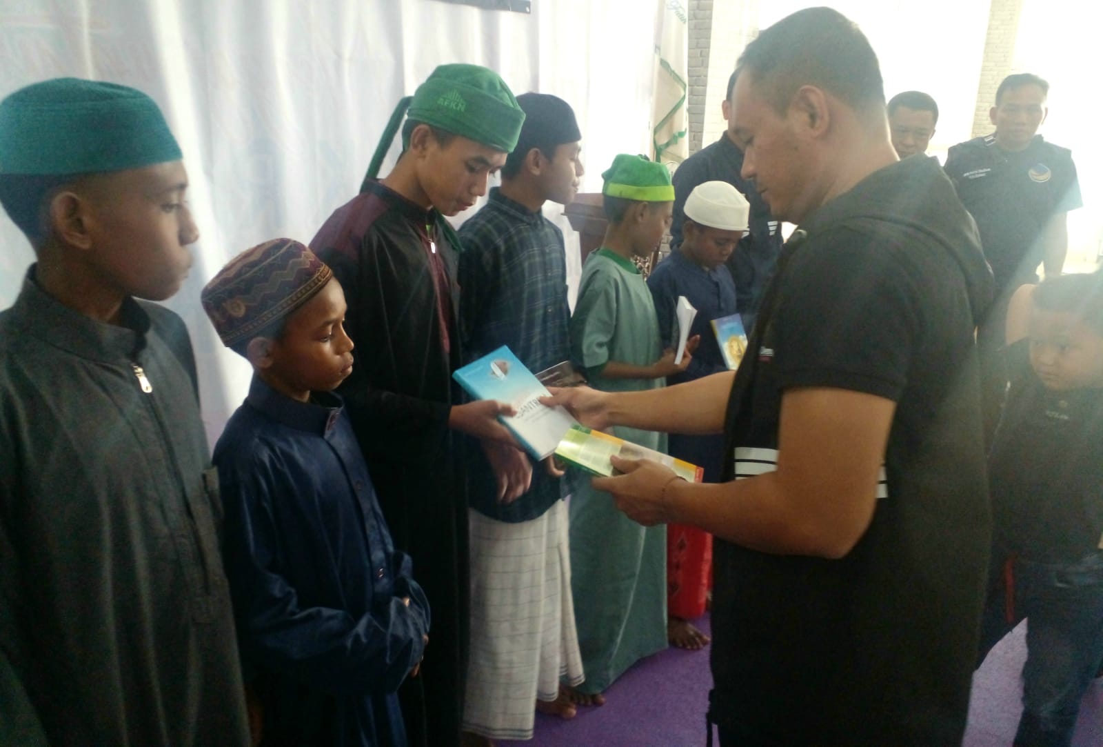 Dalam kegiatan tersebut, Ketua DPD Partai NasDem Kabupaten Bekasi, H. Marjaya Sargan, S.Sos juga secara simbolis menyerahkan bantuan buku-buku kepada para santri dan menanam bibit pohon pinang di sekitar halaman Ponpes.