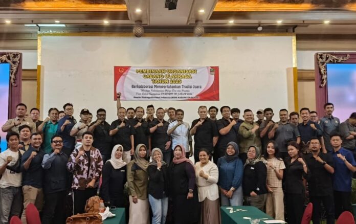 “Hari ini kita semua bersepakat bahwa keluarga besar KONI Kabupaten Bekasi, bersama dengan pengurus cabor, bersepakat untuk mengulang kembali gelar juara umum di Porprov 2026,” kata Batong Sulaeman, usai acara pembinaan organisasi cabang olahraga (cabor) KONI Kabupaten Bekasi, di Hotel Sahid, Cikarang Selatan, Jumat (29/8/2025).