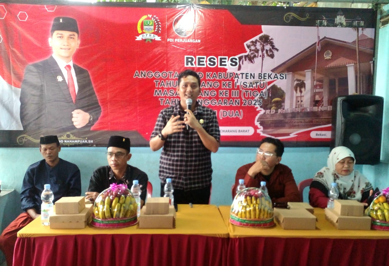 RANNEWS.CO.ID, KABUPATEN BEKASI – Anggota DPRD Kabupaten Bekasi dari PDI Perjuangan, Jiovanno Nahampun, SH menghelat Reses (serap aspirasi) Tahun Sidang Kesatu Masa Persidangan III Tahun Anggaran 2025 yang dilaksanakan di Perumahan Alam Pesona Wanajaya Kelurahan Wanasari, Kecamatan Cibitung, Sabtu (06/09/2025).