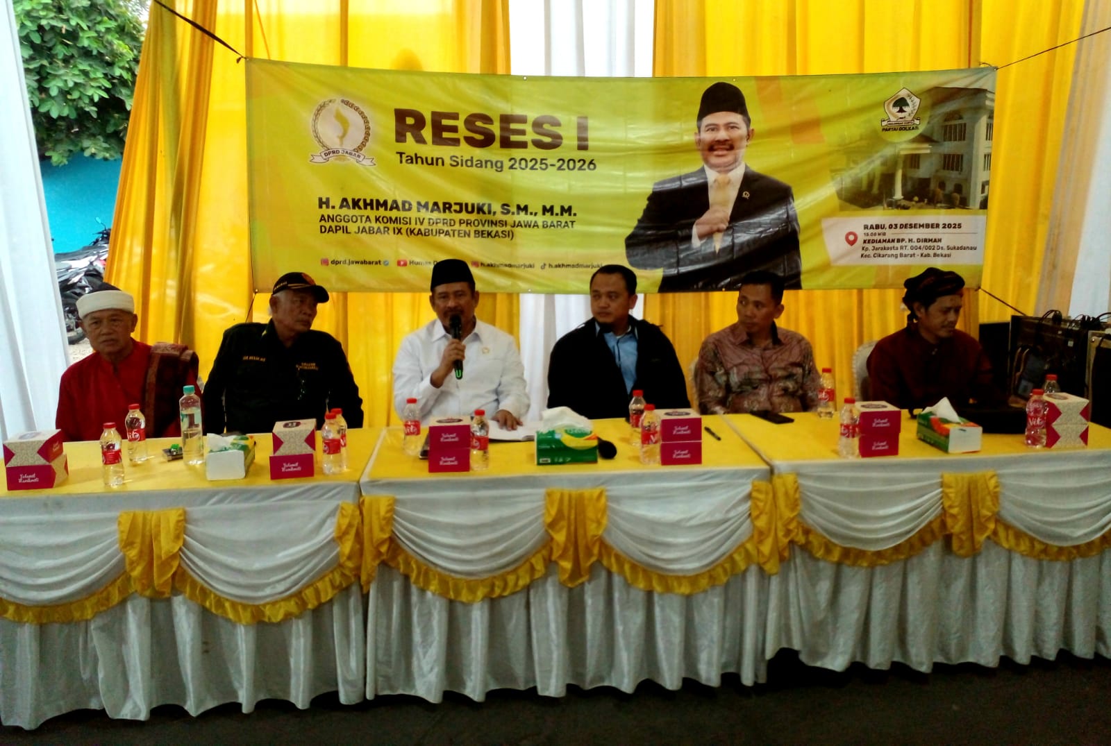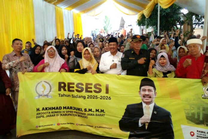 RANNEWS.CO.ID, KABUPATEN BEKASI – Anggota DPRD Provinsi Jawa Barat (Jabar) dari Fraksi Partai Golkar, Haji Akhmad Marjuki, melaksanakan Jaring Aspirasi (Reses) I Tahun Sidang 2025 – 2026 kepada ratusan konstituen yang dilaksanakan di Kampung Jarakosta Desa Sukadanau Kecamatan Cikarang Barat, Rabu (3/12/2025).