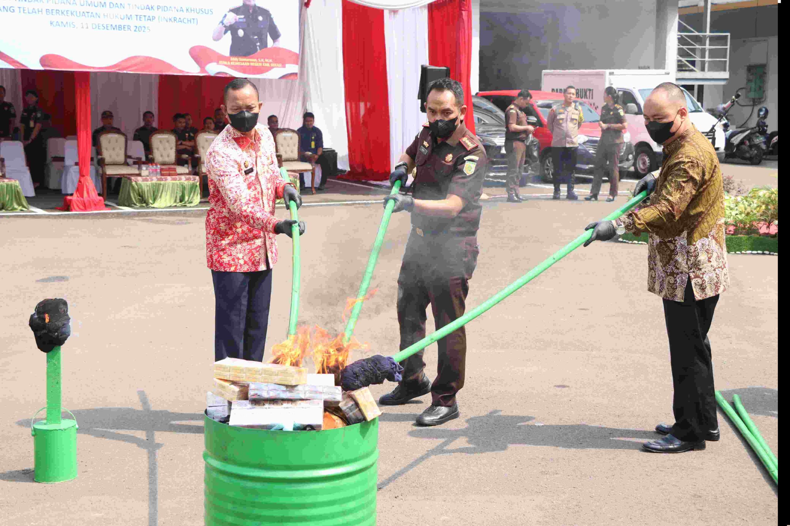 “Ya, kita apresiasi terutama pada Kajari beserta jajaran yang hari ini melaksanakan kegiatan untuk pemusnahan barang bukti yang sudah mengandung kekuatan hukum tetap. Ini salah satu bukti bahwa aparat keamanan dan APH ini bekerja dengan sangat serius,” ujar Sekda Endin usai acara pemusnahan.