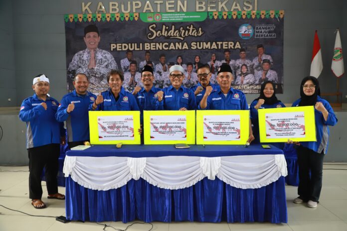 RANNEWS.CO.ID, TAMBUN SELATAN – Persatuan Guru Republik Indonesia (PGRI) Kabupaten Bekasi menyalurkan bantuan Peduli Sumatera Tahun 2025 sebagai wujud solidaritas guru terhadap sesama yang terdampak bencana. Kegiatan penyerahan dan distribusi bantuan dilaksanakan di Gedung PGRI Kabupaten Bekasi, Desa Tambun, Kecamatan Tambun Selatan, Jumat (26/12/2025), serta diikuti secara daring melalui Zoom.