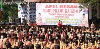 Pj Bupati Bekasi Pimpin Apel Besar HUT Pramuka ke-61 Di Buper...
